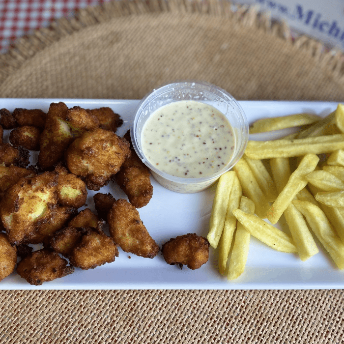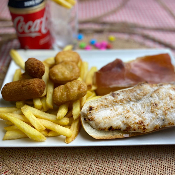 Miniserranito de pollo + Patatas fritas + Croquetas + Nuggets de pollo + Refresco