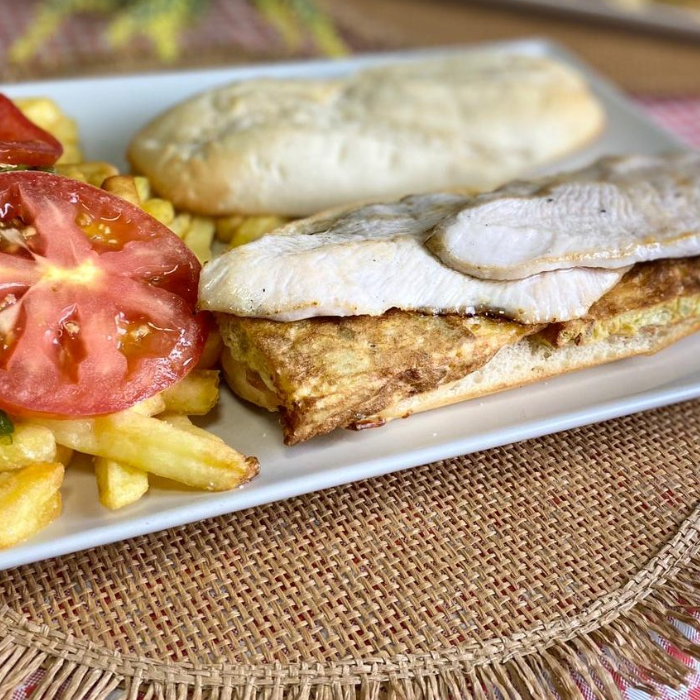 Viena andaluza, pechuga de pollo,ternera o cerdo; tortilla de patatas,