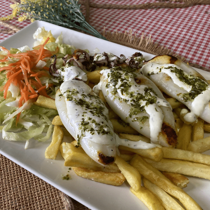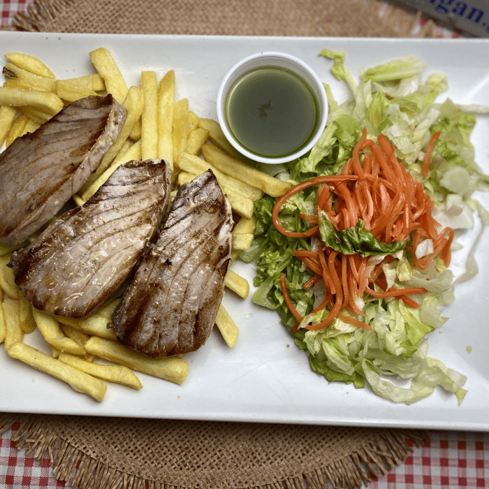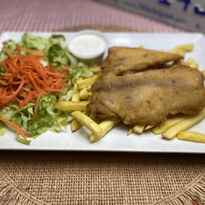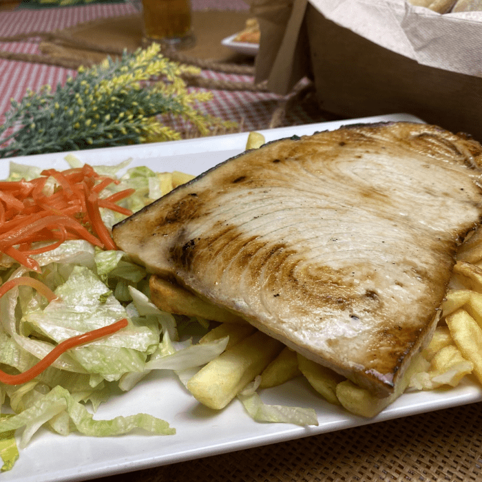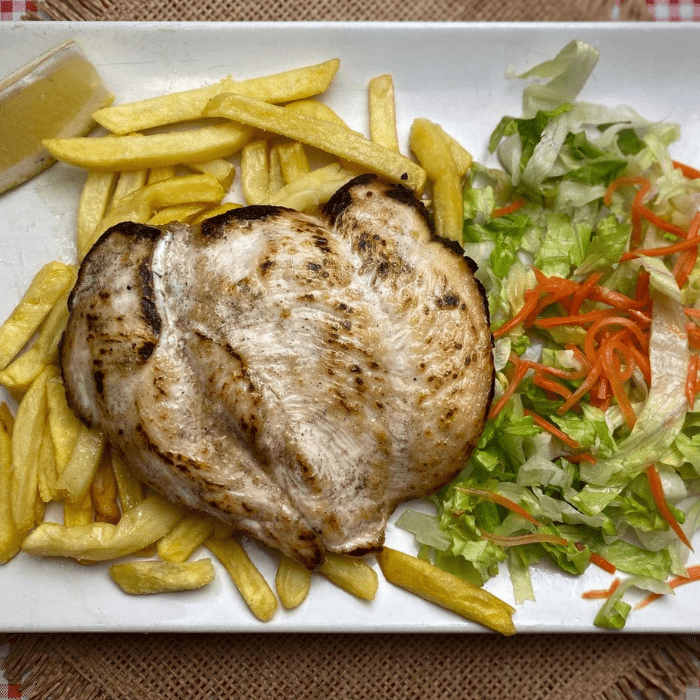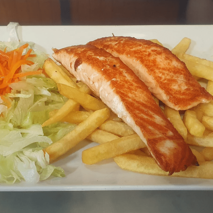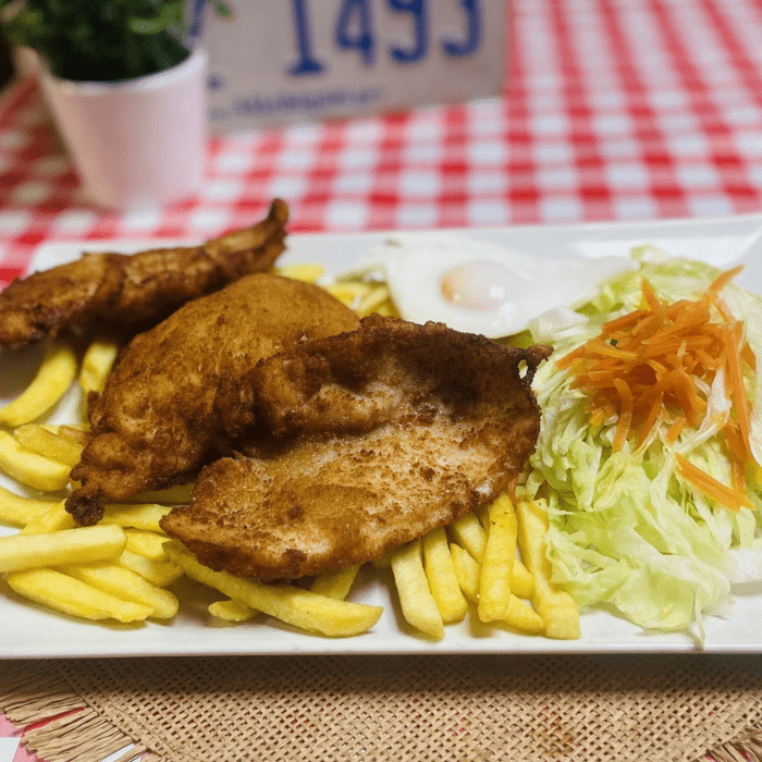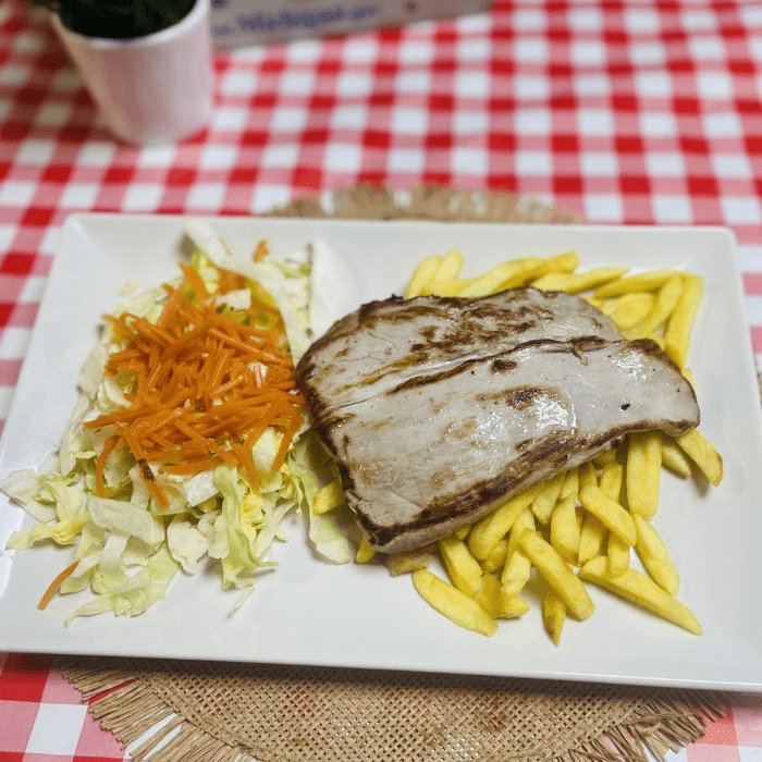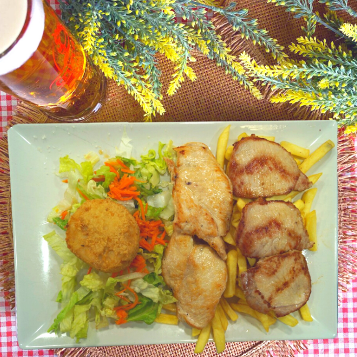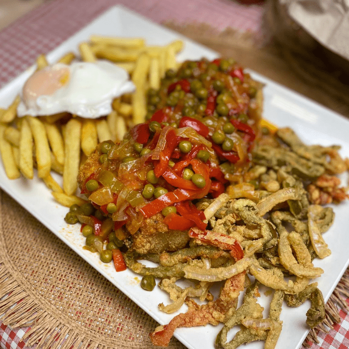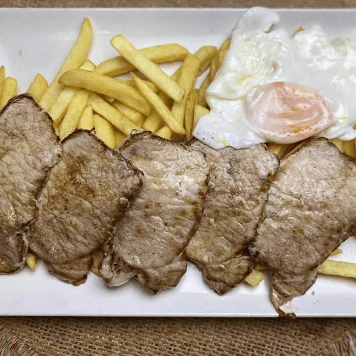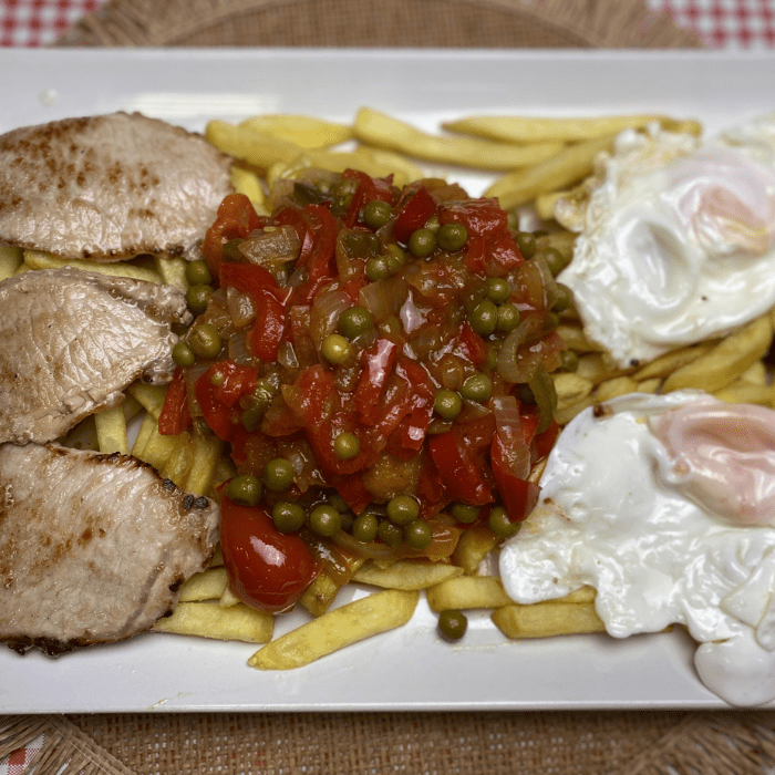 Lomo de merluza frita, Lomo plancha, Filete de pollo y