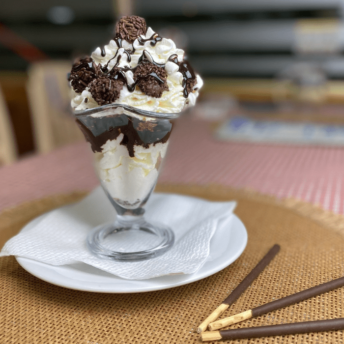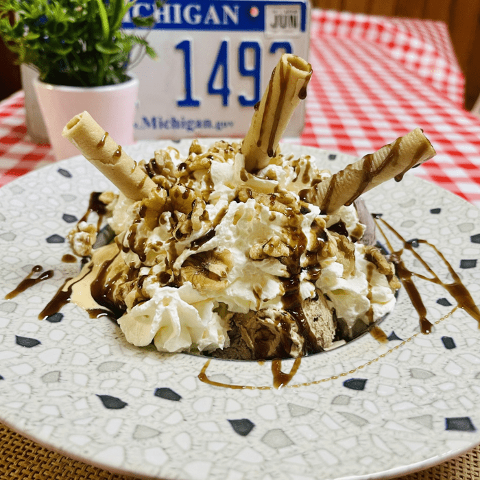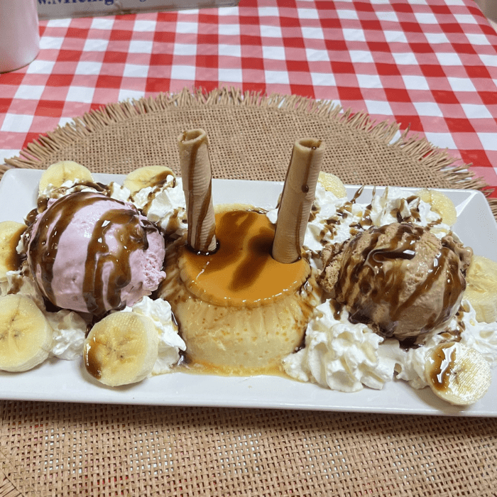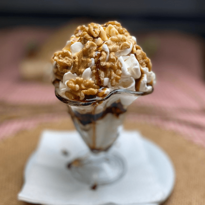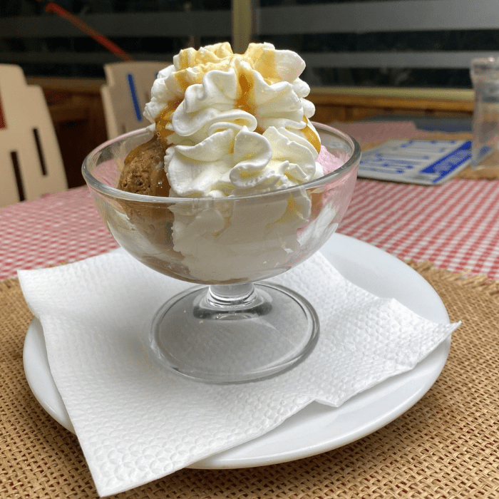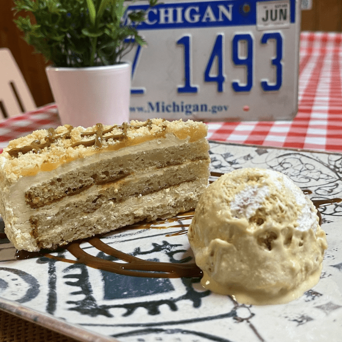 Tarta de canela y manzana con dulce de leche y helado de crumble de manzana*